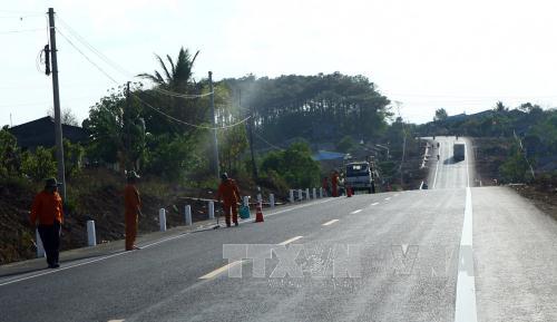 ![]() Kẻ sơn phân làn đường Hồ Chí Minh, đoạn qua tỉnh Đăk Nông. Ảnh: Huy Hùng/TTXVN |